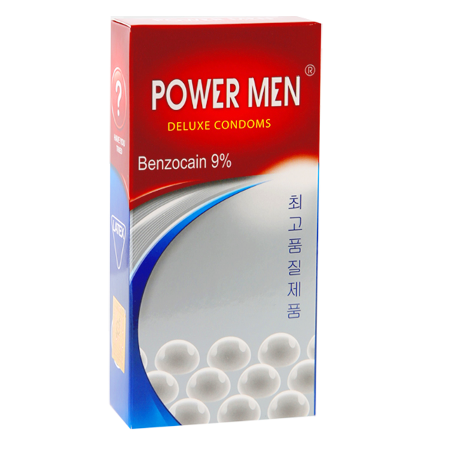 – Thành phần: 100% cao su tự nhiên, gel bôi trơn ≥ 450mg, 9% benzocain cao nhất, trị xuất tinh sớm
